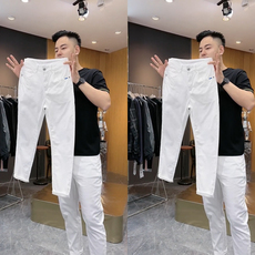 2025夏季薄款浅色牛仔裤男士青年春季修身直筒高弹力休闲长裤子潮
