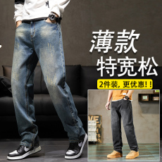 美式牛仔裤男夏季薄款宽松直筒裤休闲裤子男生复古长裤高街阔腿裤