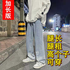 高个子加长版裤子男士青少年夏季薄款直筒牛仔裤男宽松阔腿休闲裤