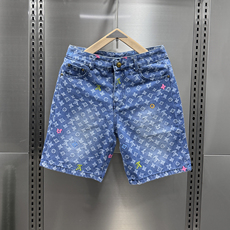 美式潮牌满印牛仔短裤男士2025夏季薄款修身直筒五分裤百搭休闲裤