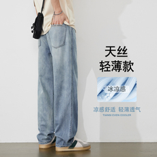 浅色天丝莱赛尔牛仔裤男春夏季凉感薄款宽松直筒浅色休闲阔腿长裤