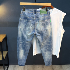 浅色薄款男士小脚牛仔裤2025新款夏季宽松九分裤弹力美式休闲长裤