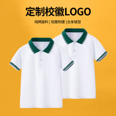男女童短袖polo衫班服墨绿翻领白边夏季小学生校服中大童T恤女童