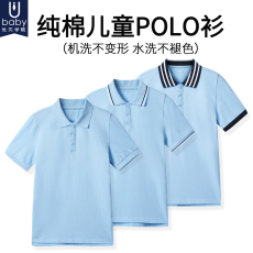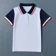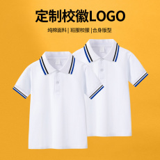 中小学生校服短袖t恤夏季白领黑蓝边男女儿童polo衫翻领上衣内搭