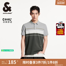 杰克琼斯男装士秋季新款式翻领T恤高级凉感25年条纹Polo衫短袖男