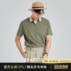 SOARIN复古风意式针织polo衫男 夏季水波纹休闲保罗衫翻领短袖T恤