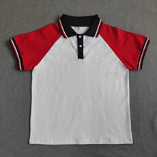定做夏季男女校服同款运动短袖白色拼大红翻领休闲T恤POLO衫半袖
