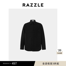 RAZZLE 地素奥莱男装长袖衬衫冬季黑色磨毛长袖衬衫