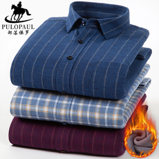 保罗冬季加绒加厚保暖衬衫男士纯棉磨毛长袖中青年纯色男装衬衣