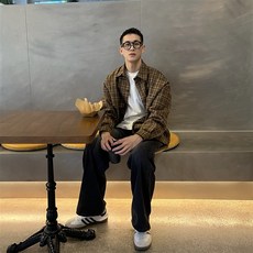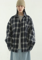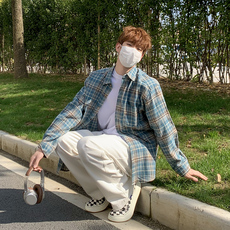 白口阳【荷之桃桃】少年感慵懒风磨毛格子衬衫通勤休闲宽松衬衣男