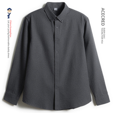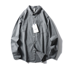 日系水洗磨毛纯棉长袖衬衫男2024新款春秋季外贸男装全棉休闲衬衣