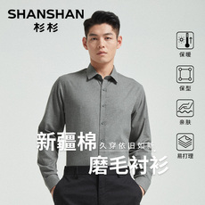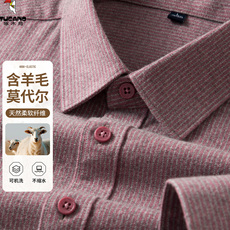 罗蒙2025春秋季新款羊毛长袖衬衫男士商务休闲中年磨毛纯棉衬衣服