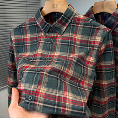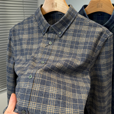 一线撤柜撤标2024年春秋季新款时尚百搭男士舒适磨毛格纹长袖衬衫
