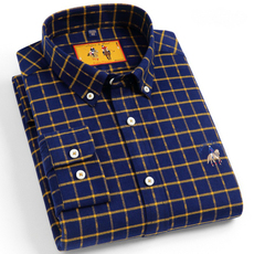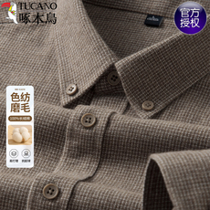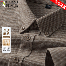啄木鸟色纺加厚格子男士长袖衬衫中年休闲宽松磨毛全棉大码衬衣男