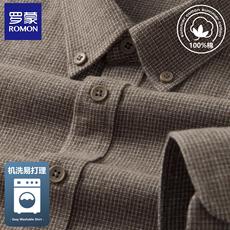罗蒙男士纯棉磨毛衬衫长袖2025新款易打理亲肤全棉春秋季格子衬衣