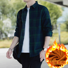 双面磨毛衬衫男长袖秋冬款时尚休闲格子衬衣男装中青年内搭寸衣服
