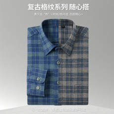 【纯棉磨毛】男士格纹衬衫男长袖复古休闲2025春秋季新款衬衣男
