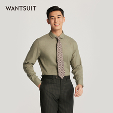 WANTSUIT男秋冬墨绿双贴袋磨毛衬衫商务休闲上班通勤结婚新郎订婚