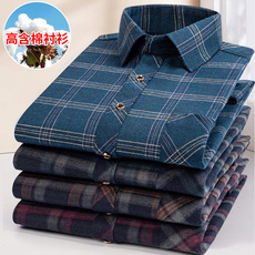 纯棉磨毛长袖衬衫男格子衬衣中年爸爸装休闲上衣中年男装休闲上衣