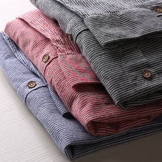 磨毛面料 秋冬男士青年时尚条纹舒适棉质多色可选修身长袖衬衫潮