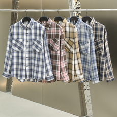 韩国代购22S/S cozy cut off check shirt 磨毛裁剪格子衬衫 男女