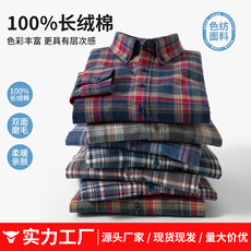 2025年新款磨毛衬衫男长袖格子纯棉免烫男士商务休闲男装衬衣大码
