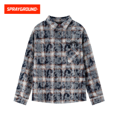 SprayGround鲨鱼嘴25秋款磨毛格纹长袖衬衫男女情侣美式宽松衬衣