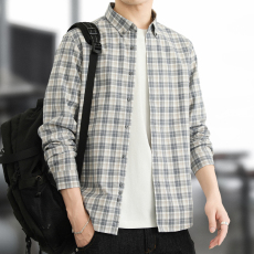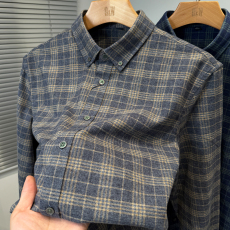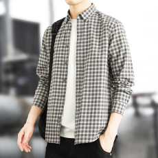 2025秋季新款男士磨毛纯棉长袖衬衫休闲格子衬衣青年上衣男款外套