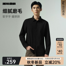【磨毛衬衫】报喜鸟秋季新款男士商务正装长袖衬衫纯色衬衣上衣男