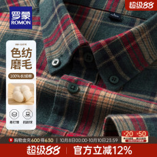 【纯棉】罗蒙男士长袖格子衬衫2025秋季新款磨毛衬衣简约工装上衣