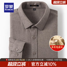 【含羊毛】罗蒙男士磨毛翻领长袖衬衫2025秋季新款工装厚款衬衣男