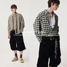 美式复古磨毛格子衬衫男款秋季格纹长袖衬衣外搭开衫小众情侣外套