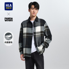 HLA/海澜之家panda wowo宽松潮外套衬衫秋冬磨毛格子厚通勤衬衣男