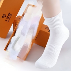 毛巾底中筒袜 男长筒春秋冬季纯棉加厚吸汗防臭白色黑色袜子