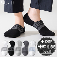 袜子男船袜夏季薄款纯棉100%抗菌防臭透气防滑不掉跟浅口男士短袜