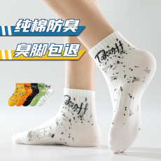纯棉袜子男款短袜夏季薄款男士短筒防臭7a抗菌青少年个性运动棉袜