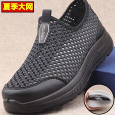 新品老人鞋男士网眼一脚蹬夏季休闲网鞋透气防滑镂空网面爸爸鞋薄