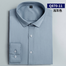 春季竹纤维衬衫男长袖商务休闲职业装浅灰色衬衣男打底衫修身免烫