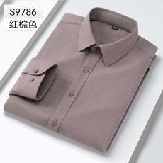 2024春季新款衬衫男长袖商务休闲职业装红棕色衬衣男装打底衫免烫