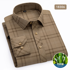 2024春季竹纤维衬衫男长袖商务休闲职业装卡其色格子衬衣打底衫男