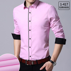 2024春季粉色衬衫男长袖商务休闲职业装内黑领衬衣时尚青年打底衫