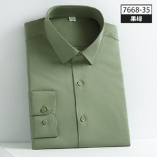 2024春季新款衬衫男长袖商务休闲职业装果绿色衬衣男寸衫无口袋潮