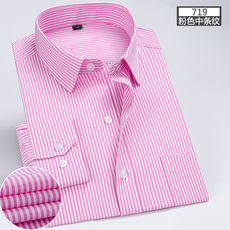 2024春季新款粉色条纹衬衫男长袖商务休闲职业工装纯色衬衣打底衫