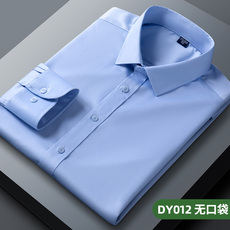 2024春季竹纤维衬衫男长袖商务休闲职业装蓝色无口袋衬衣男装上衣