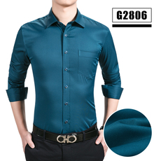 春季墨绿色衬衫男长袖商务休闲职业工装纯色衬衣男打底寸衫略修身