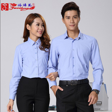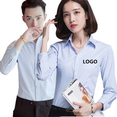 男女同款条纹蓝色长袖衬衫定做正装团体工作服职业工装定制绣logo