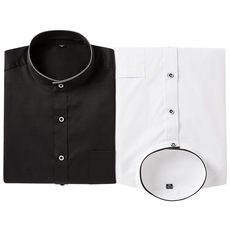 2024春季长袖衬衫男士中国风立领商务休闲纯色白衬衣圆领寸衫上衣