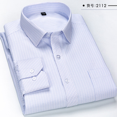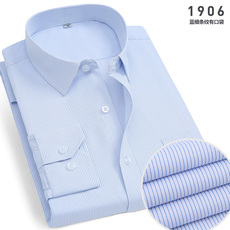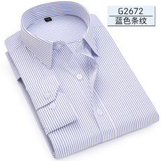 春季蓝色条纹衬衫男长袖商务休闲职业工装上班衬衣打底衫 有大码