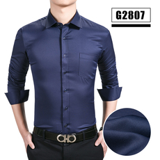 春季藏青色衬衫男长袖商务休闲职业工装纯色衬衣男打底寸衫略修身