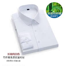 春季竹纤维男士长袖白色衬衫职业商务正装短袖工装休闲蓝黑衬衣寸